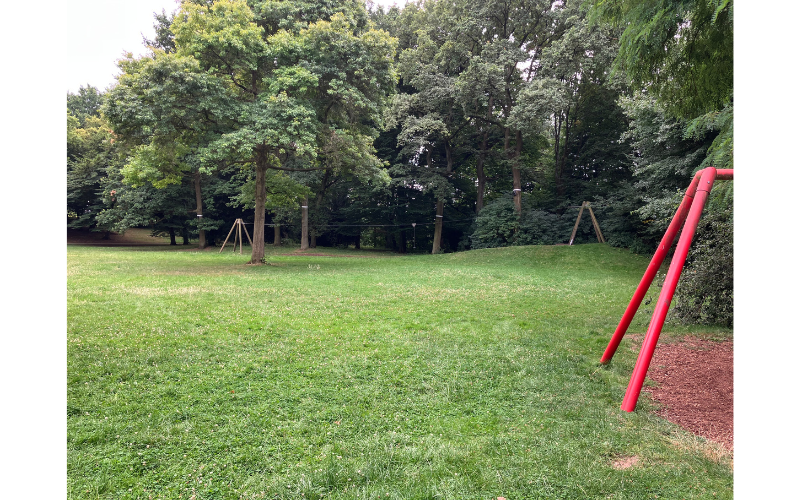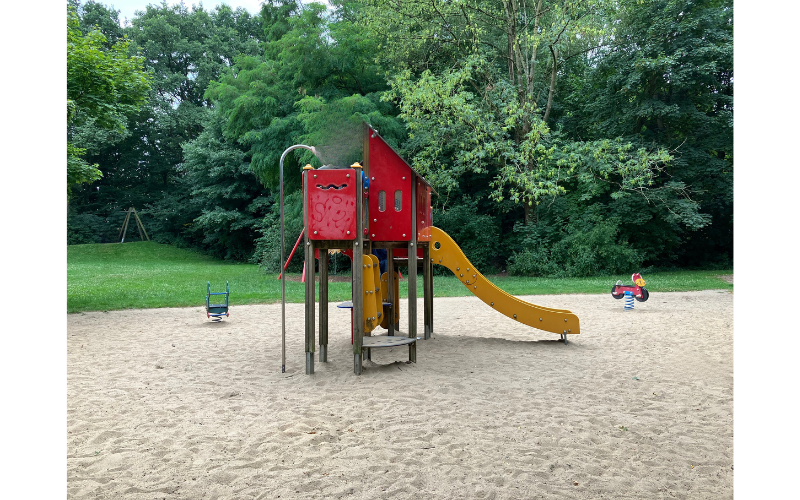 Vorhandene Spielgeräte: Kleinkindschaukel (Sonnenblume), Sreetballständer